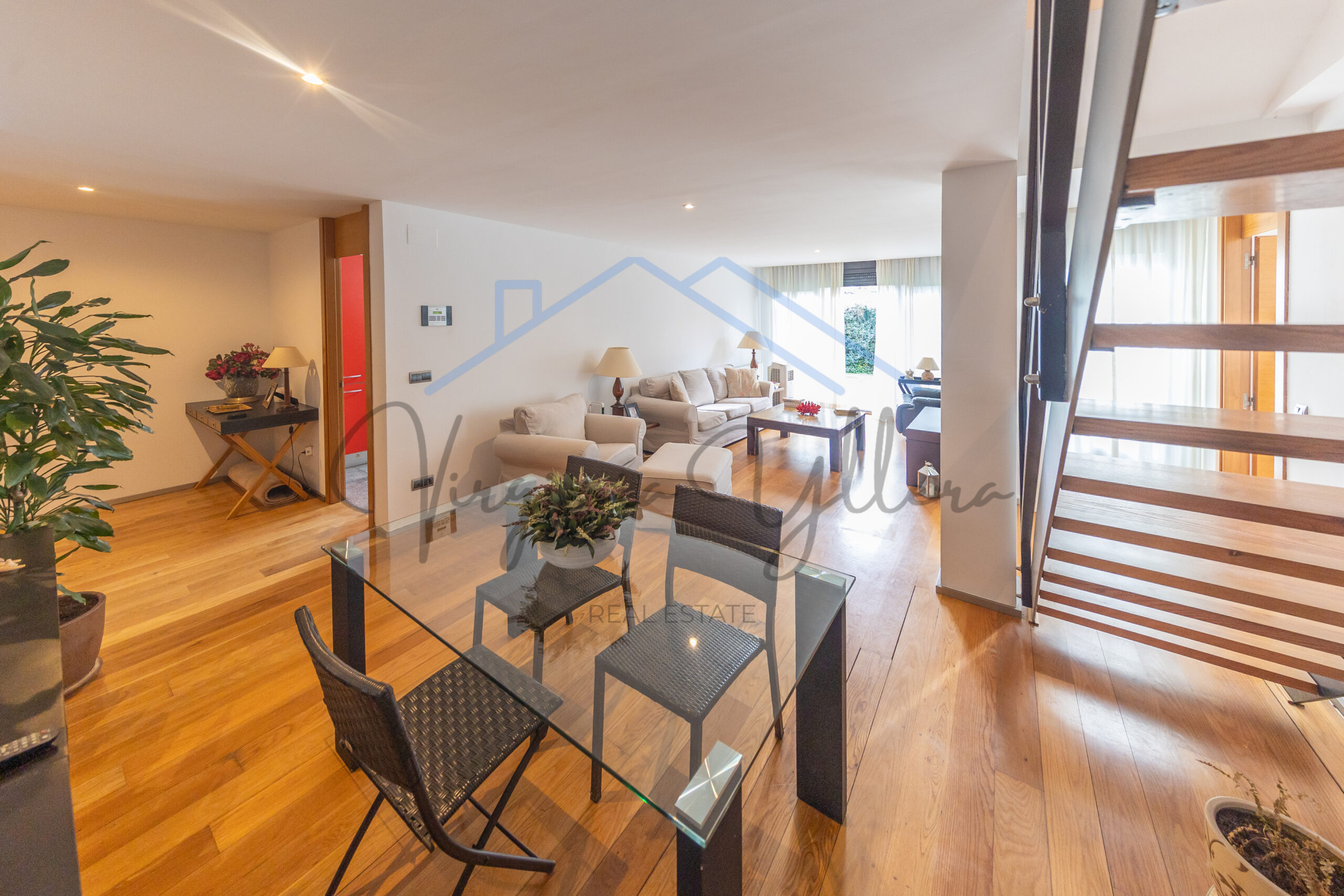 El salón-comedor, amplio y muy luminoso, ofrece acceso directo a un jardín privado de aproximadamente 50 m², perfectamente orientado y con espacio suficiente para zona de comedor exterior, área de descanso o disfrute familiar. La conexión entre interior y exterior refuerza la sensación de espacio y calidad de vida.